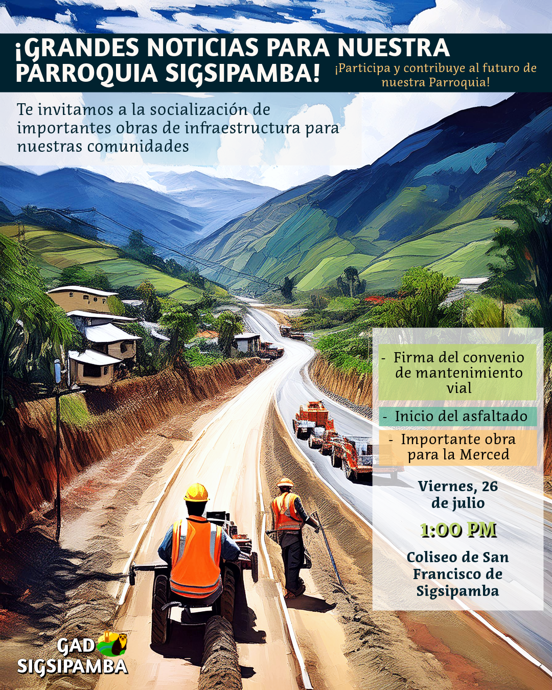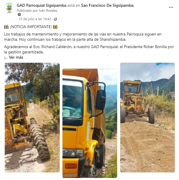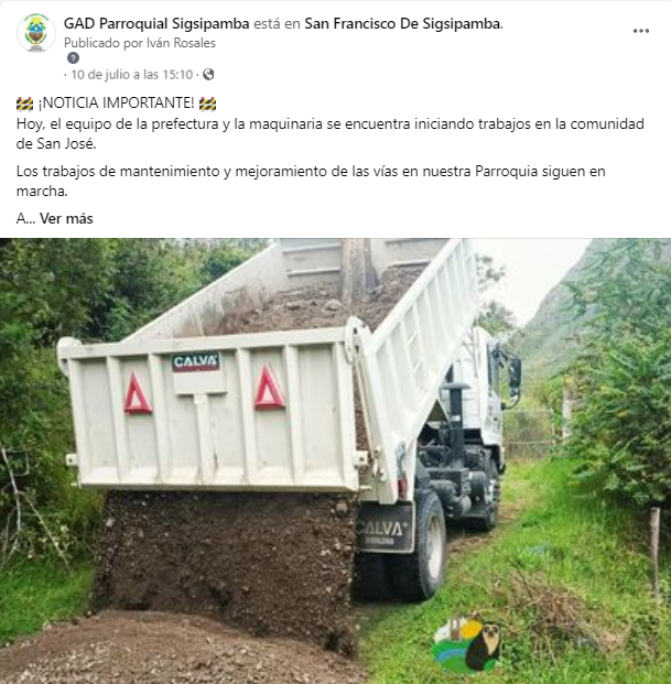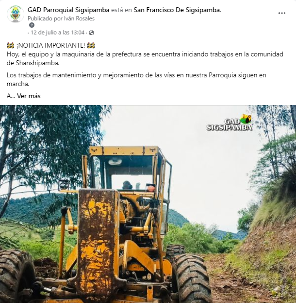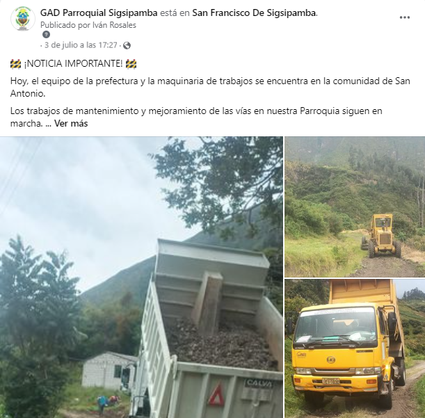 ¡La comunidad de San Francisco de Sigsipamba está de Festejos! Hoy celebramos el inicio del proceso de mejoramiento vial que transformará el acceso hacia nuestra querida parroquia.